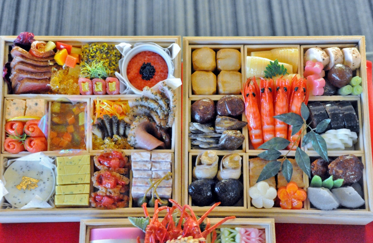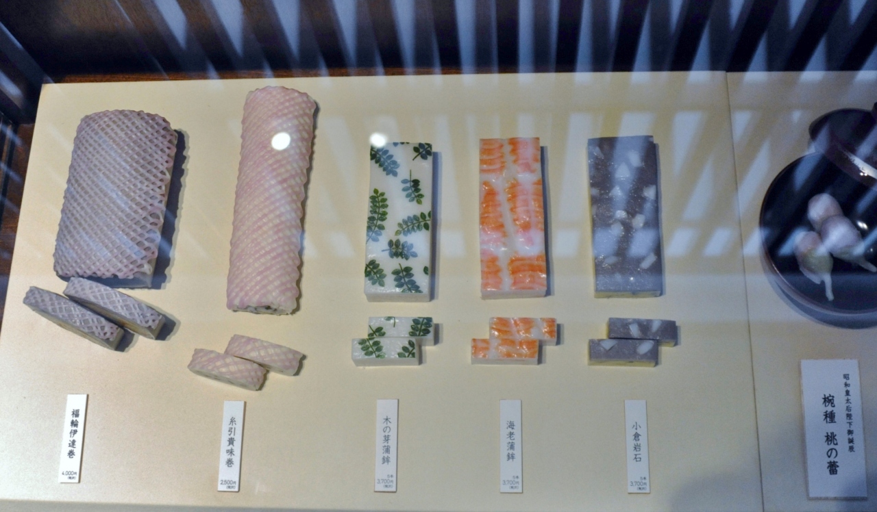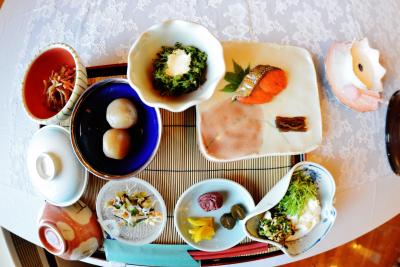 しめじぬた、鯉の甘煮、うどのクルミ和え、山菜の生ハム巻