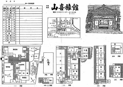 1925年開業1935年建築木造3階建+4F展望室付戦争前の典型的な温泉旅館