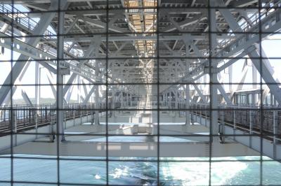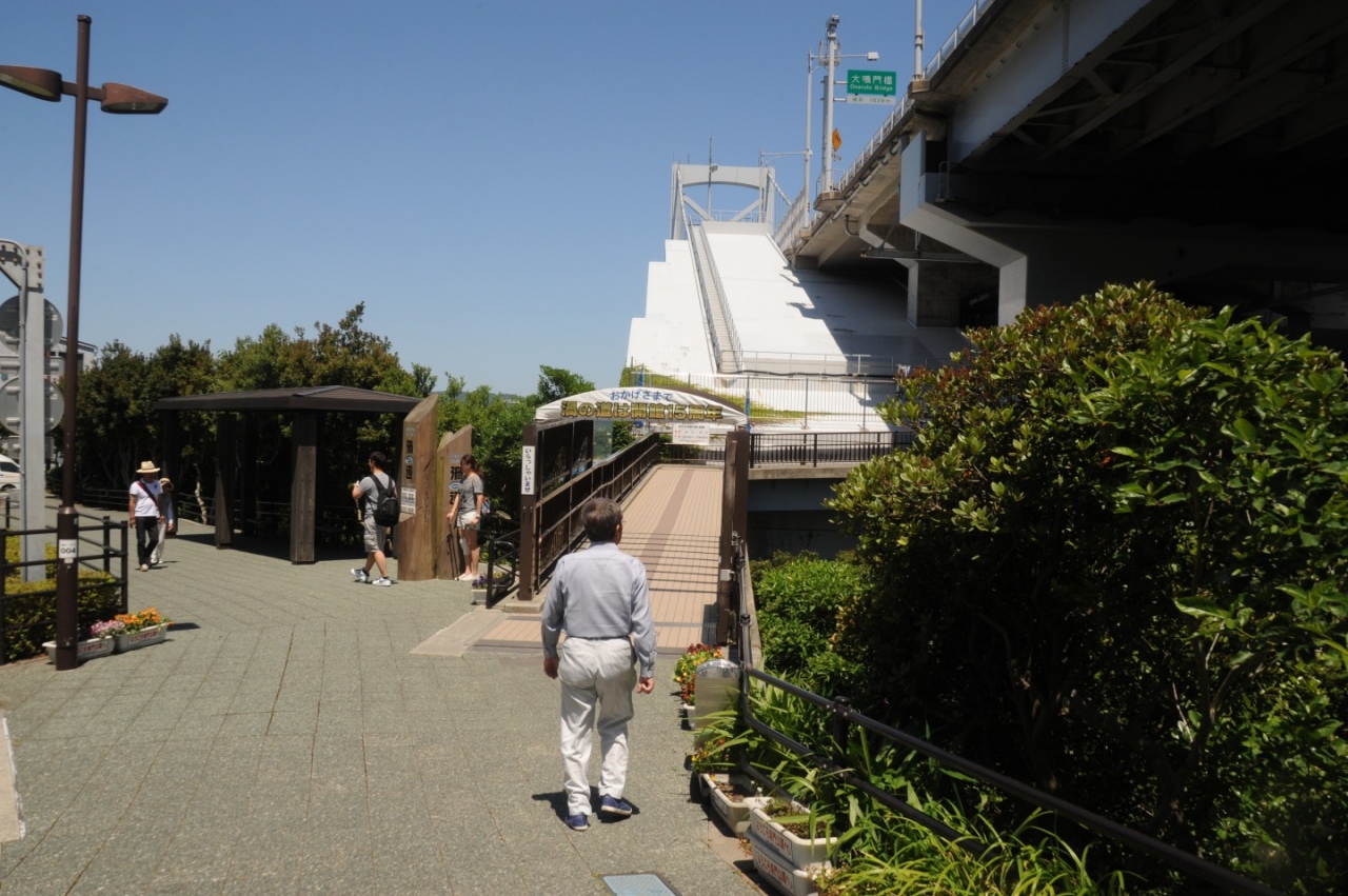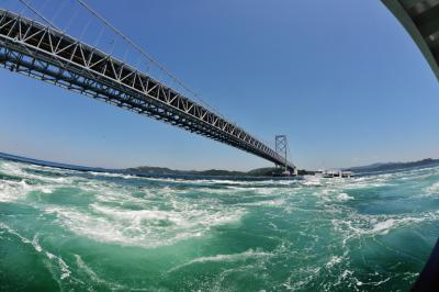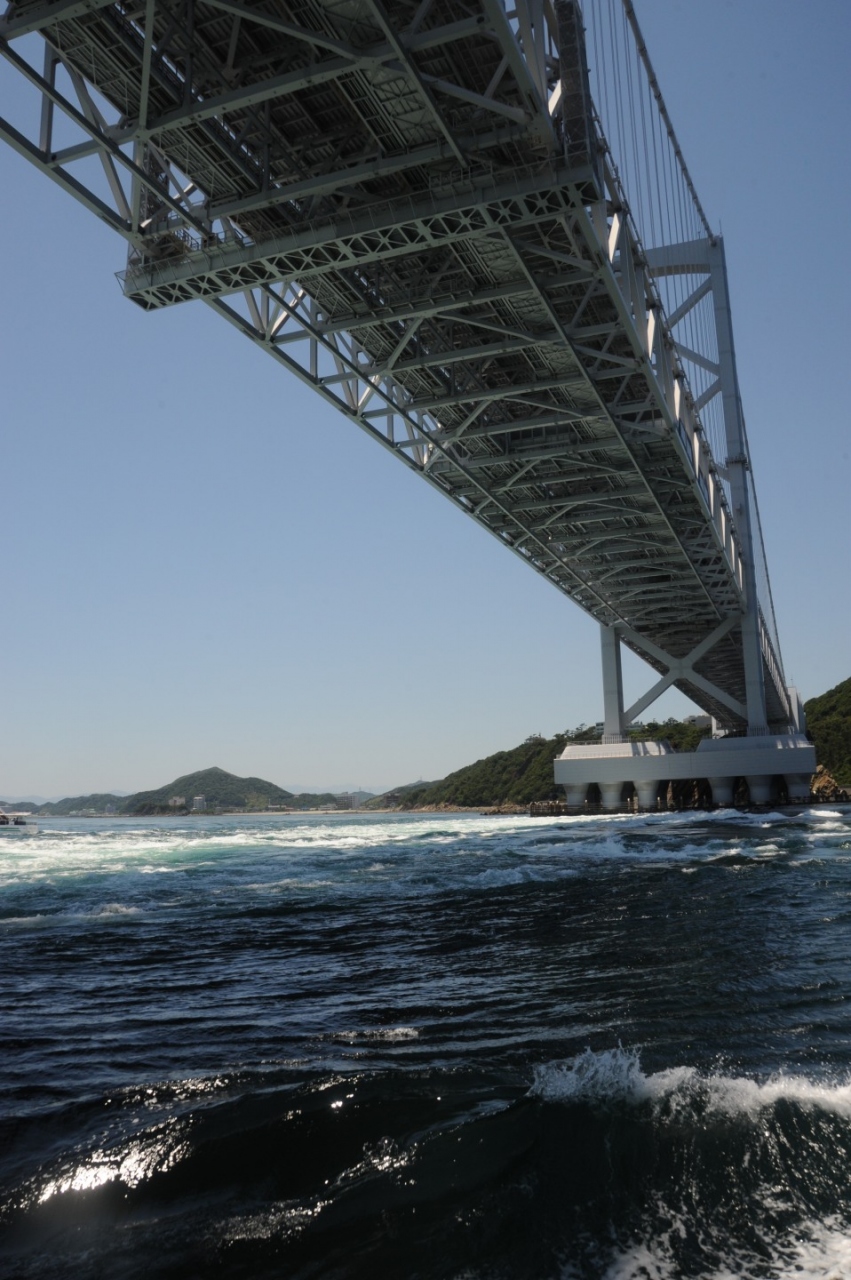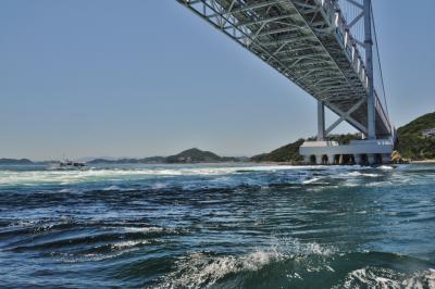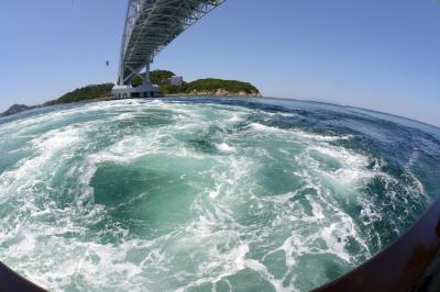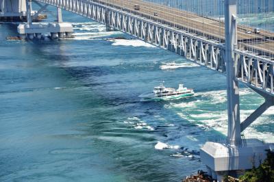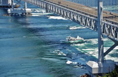 まずはうずしお観測船で渦潮見学し、まだ大潮の時刻90分前後であるため、ここ渦の道で渦潮を見学した。大鳴門橋の下を大鳴門橋のほぼ中央まで徒歩で行くのは老人にはややきついものがあるが、行く価値はある。中央部付近ではガラス越しに渦潮を真上から見ることができる。