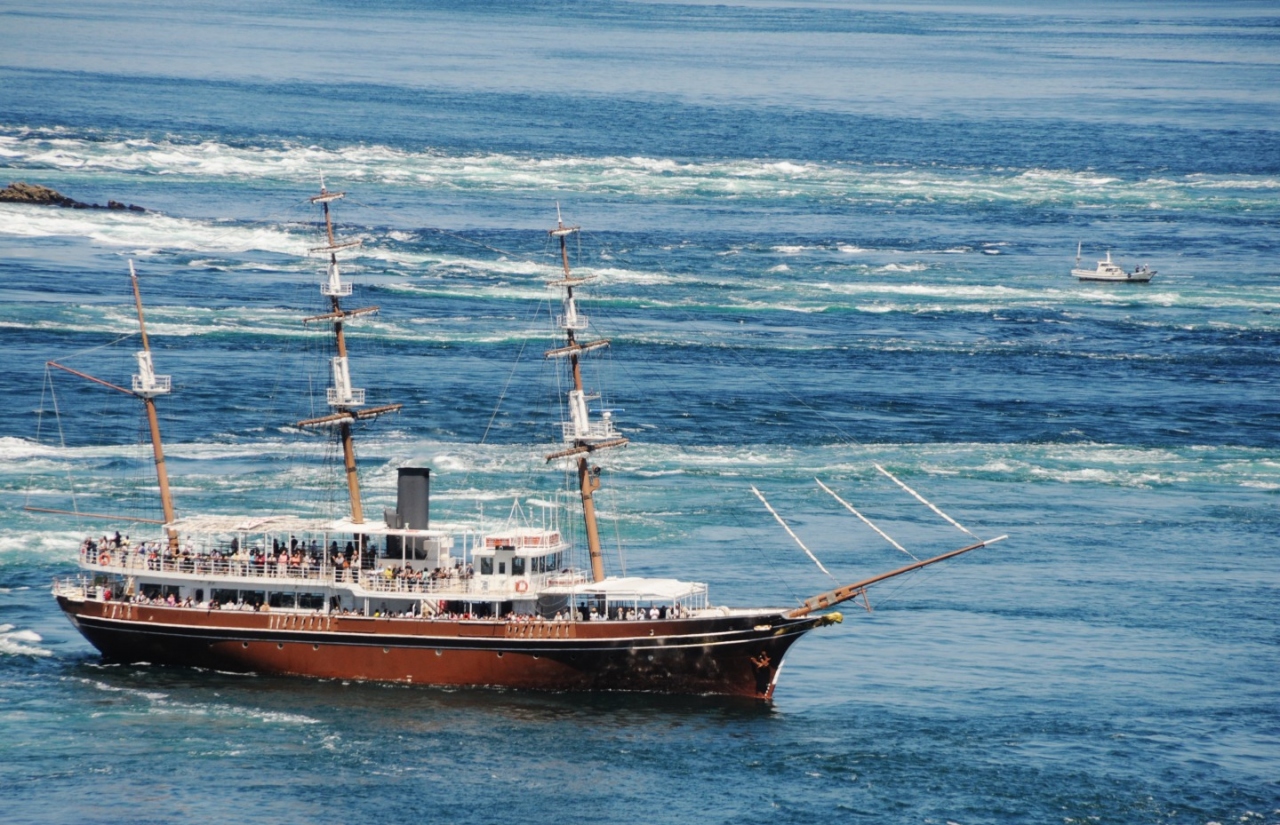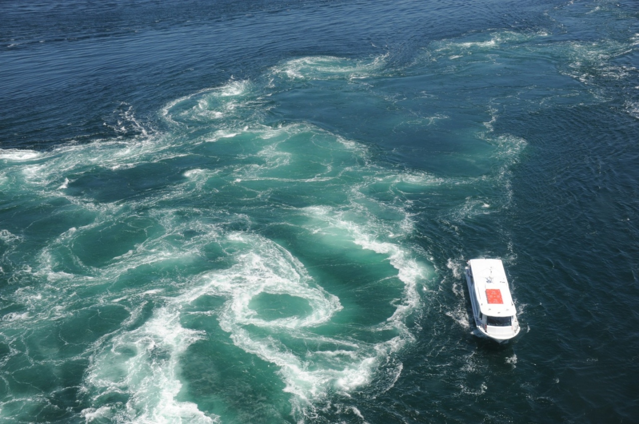 事前にうずしお観測船などのサイトで大潮発生日と時間を確認すること。大潮の前後90分が最も渦潮が発生する。