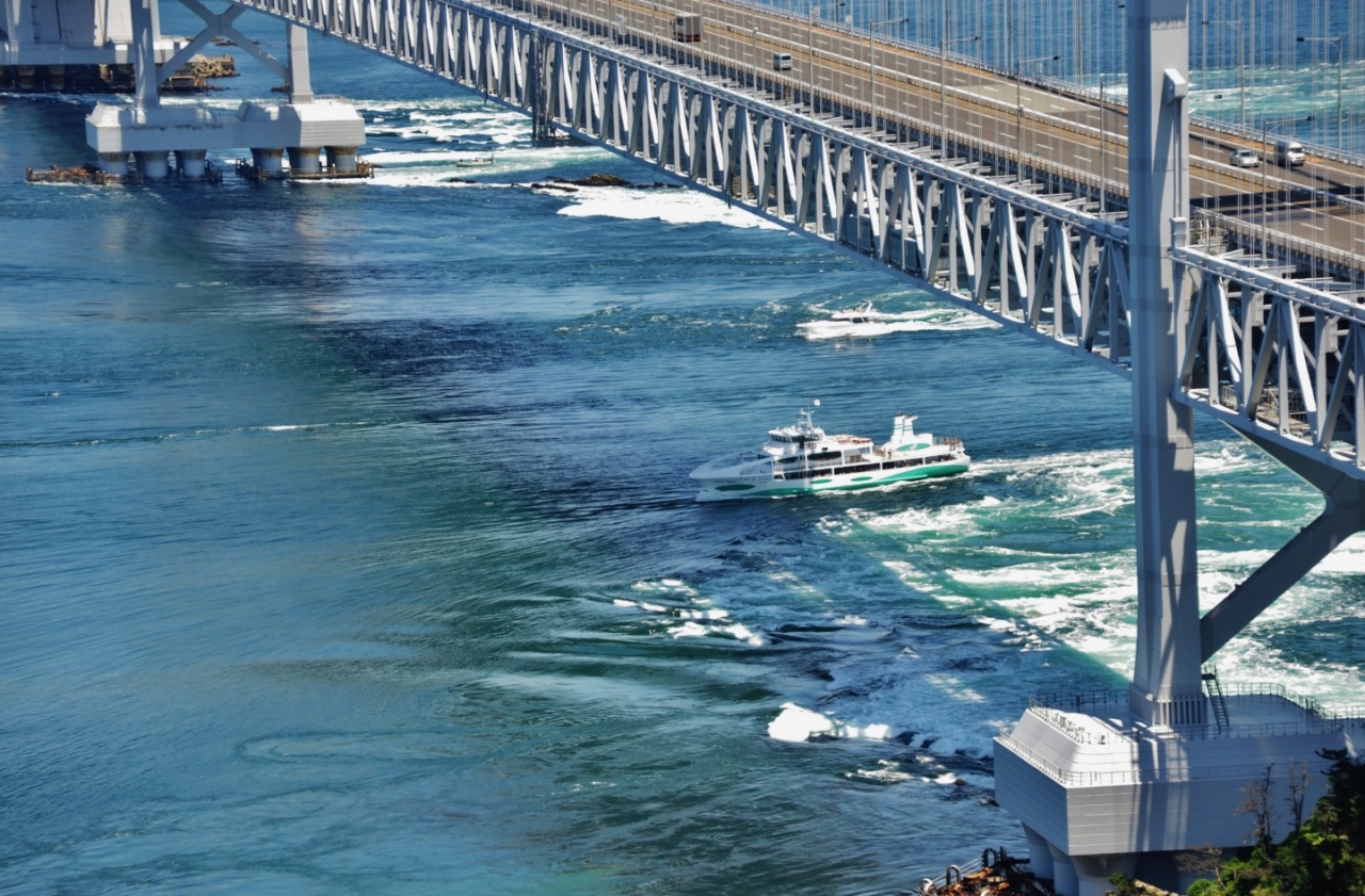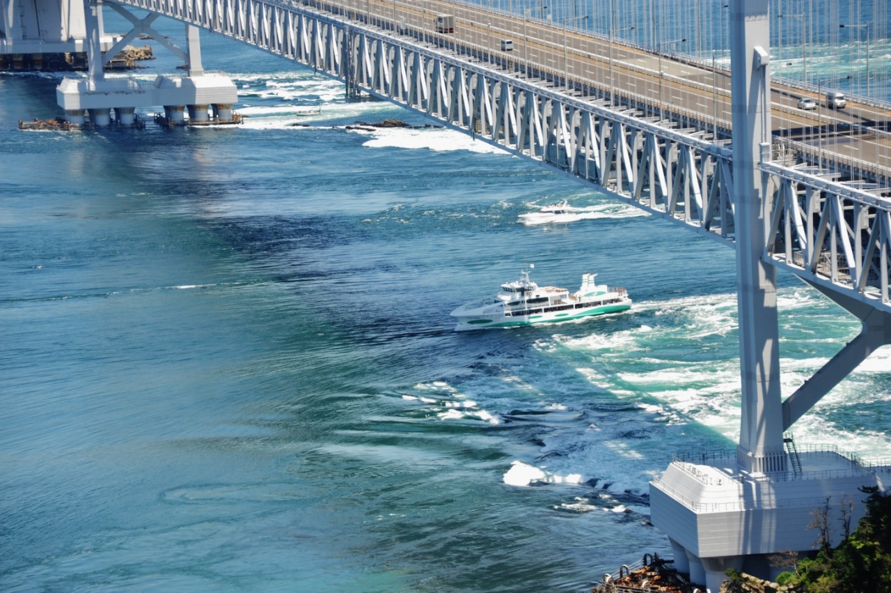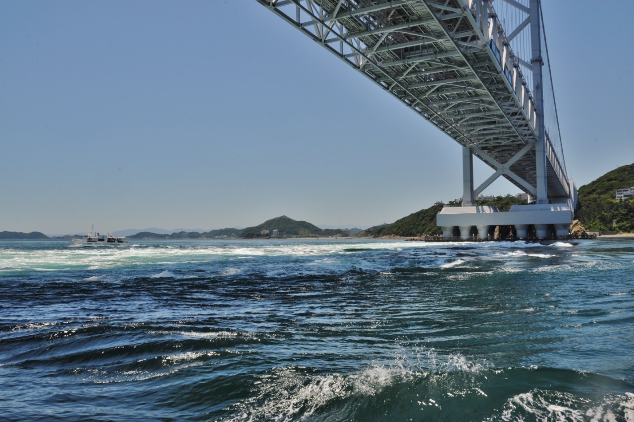 鳴門市発着のうずしお観測船は複数あるようであるが、私は鳴門観光汽船のうずしお観測船を利用した。最も重要なのは、うずしおは大潮のときに最も大きくなるので、事前に鳴門観光汽船のサイトで大潮の時間を確認して、大潮の前後90分前後に乗船することを推奨する。