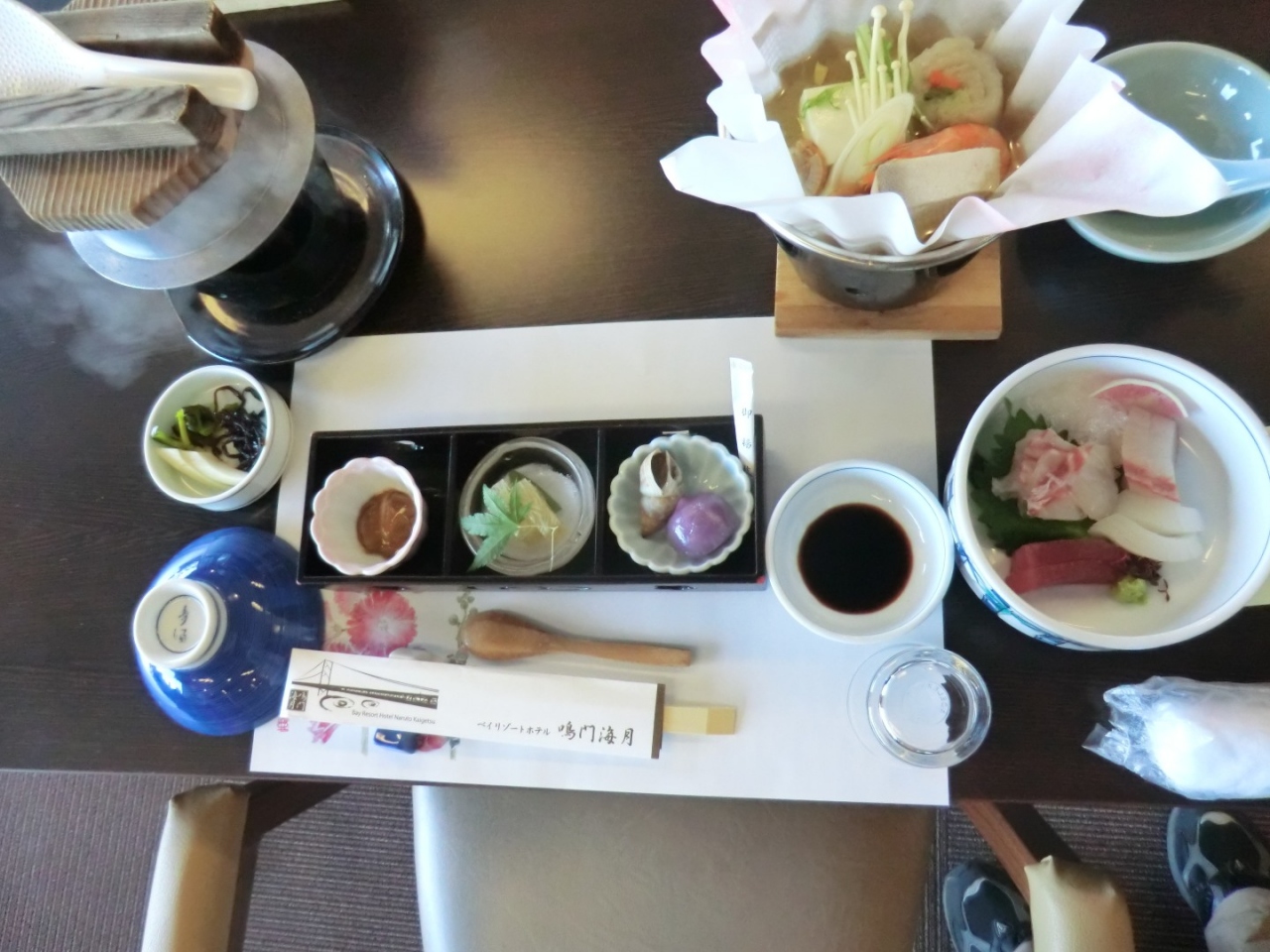ホテルに宿泊することから、朝夕夜の鳴門海峡と大鳴門橋の風景を楽しむことができる。大鳴門橋は盆と正月のみライトアップされるそうであるが、ライトアップされてない通常の照明だけでも大鳴門橋は十分美しい。