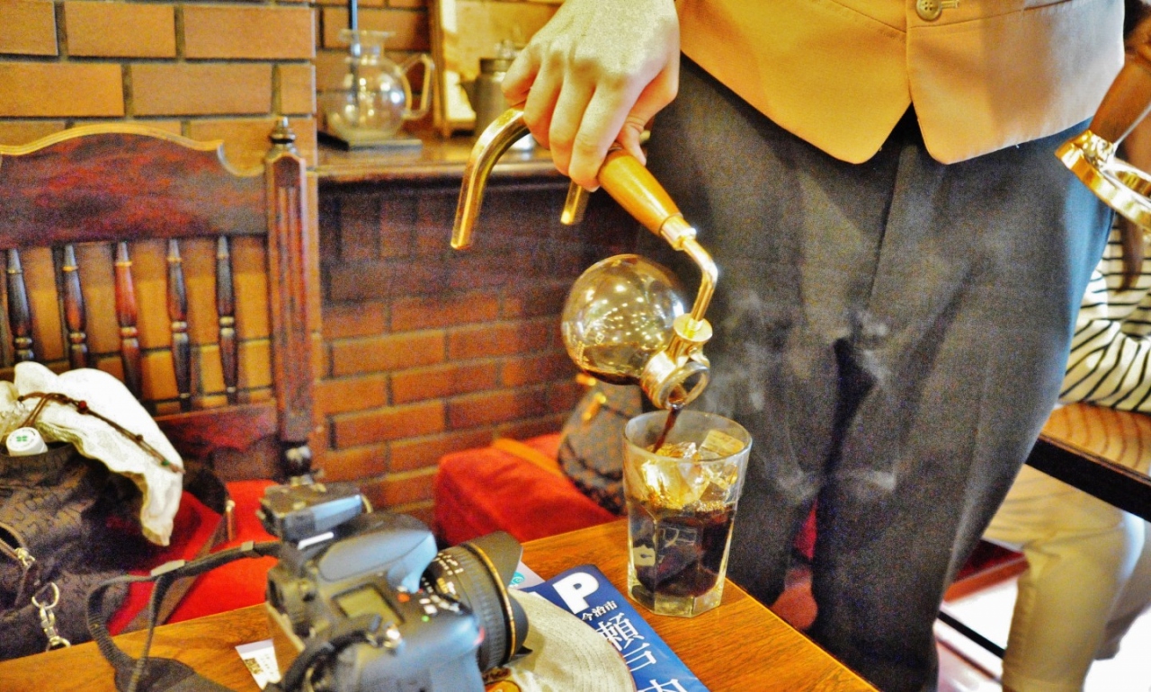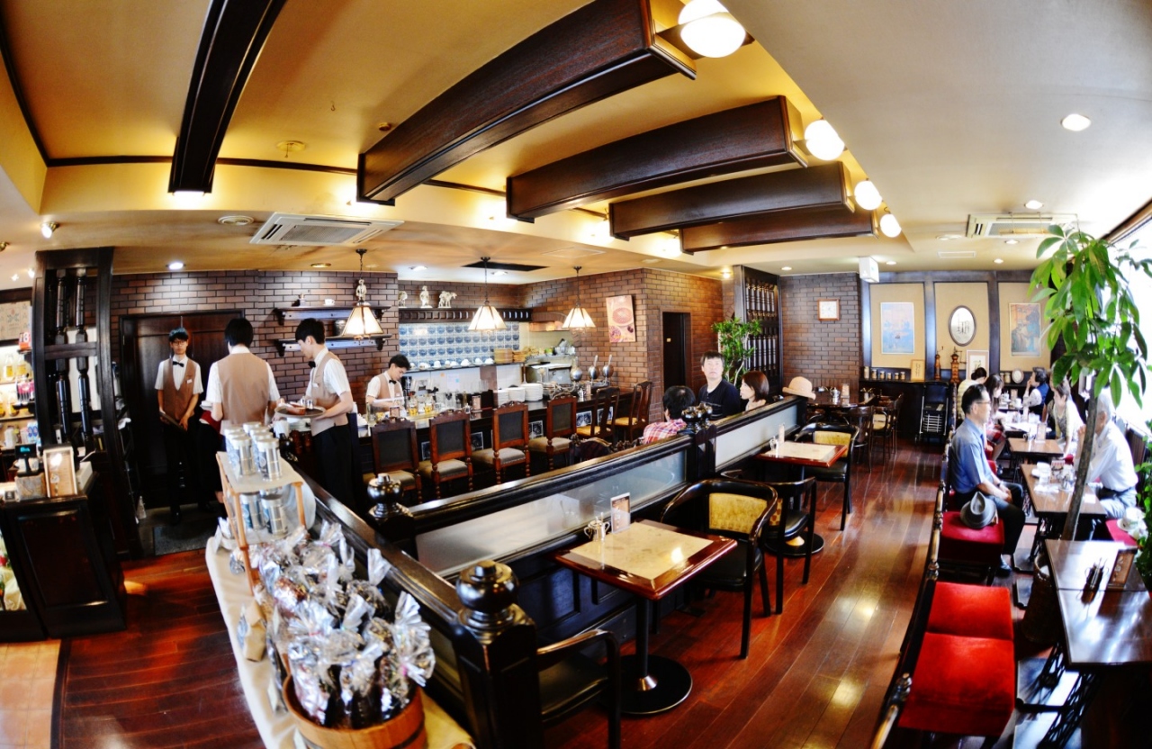 外観店内とも内装が渋く、歴史を感じさせる。入口にはコーヒーミルが置いてあり、このミルを幼児が回して遊んでいた。- 旅行時期