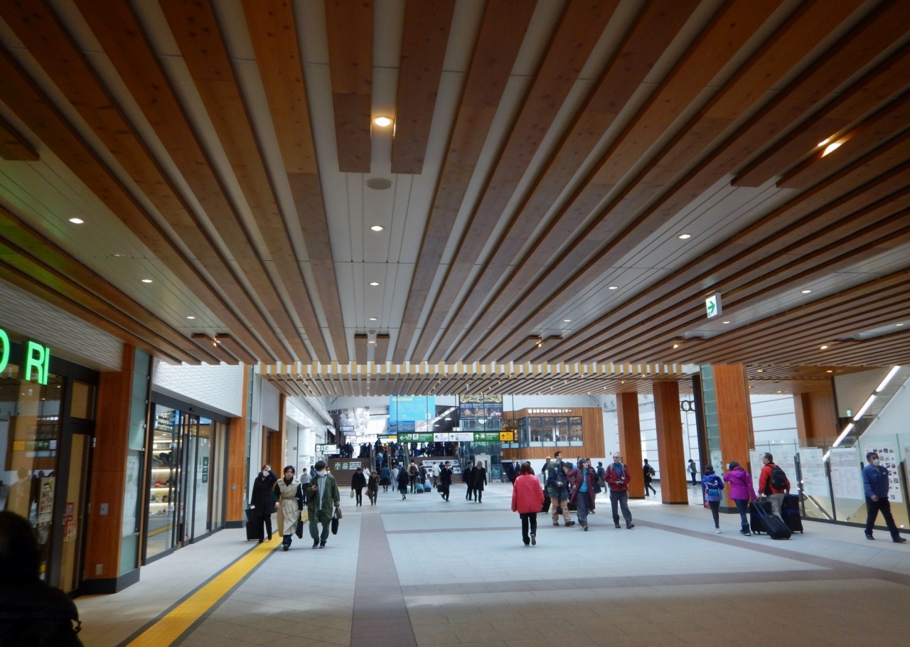 長野駅善光寺口に行ったら、前ではなく、上を眺める。東京国際競技場に行ったことがある人ならば上を眺める。林業に従事したことがある人ならば上を眺める。ここ善光寺口は長野市産のスギ材を使い、歴史と伝統を門の形で表現したそうである。今年、オリンピック開会式の会場、東京国際競技場に行ったことある妻がスタジアムに似てると言い出し、上をみることとなった。