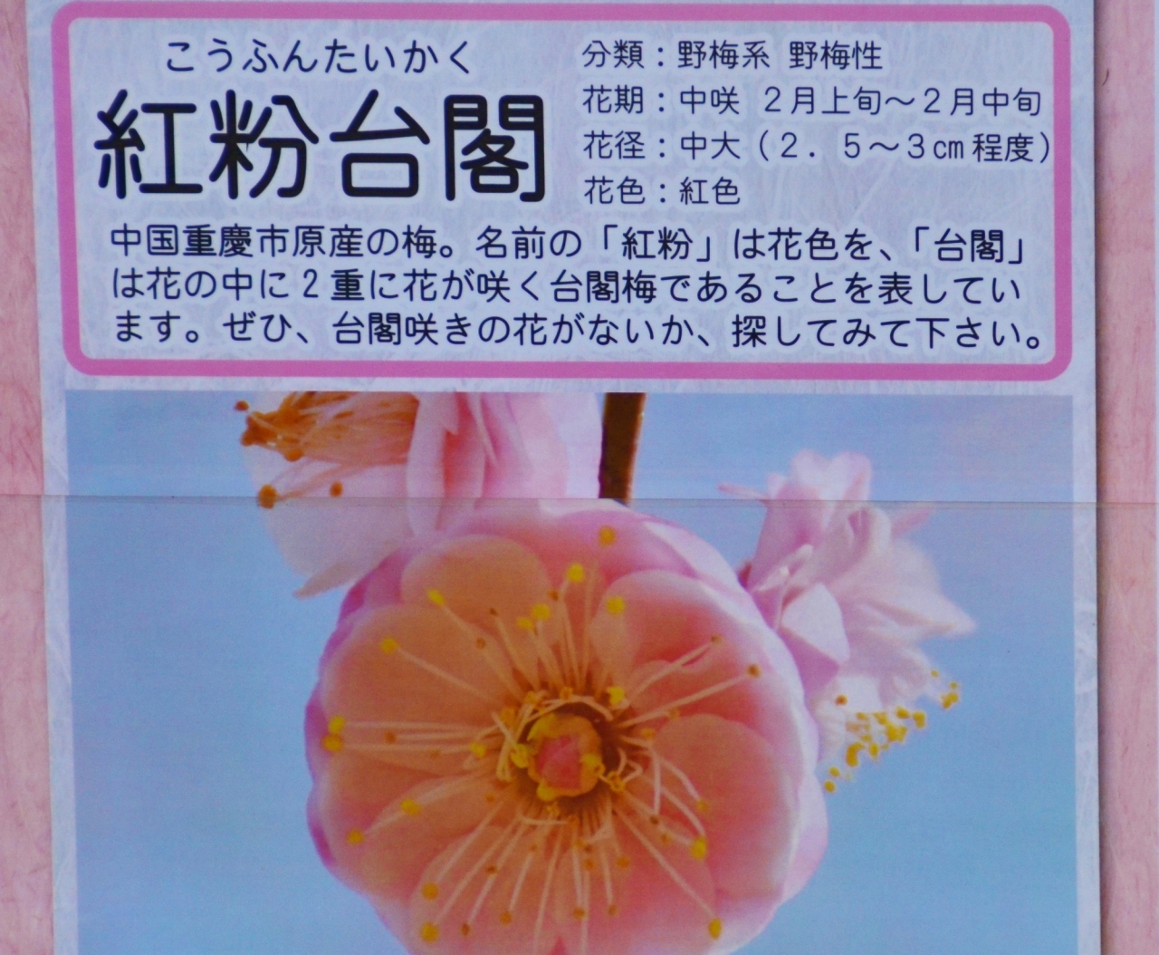 個々の梅毎に説明あり解りやすい。一部の品種には枯れ始めたものもあり、早めに行くことを推奨する。