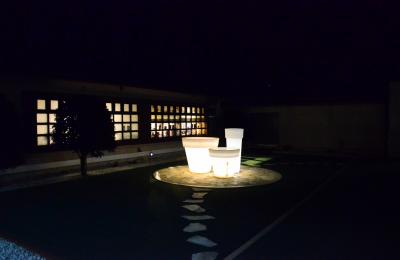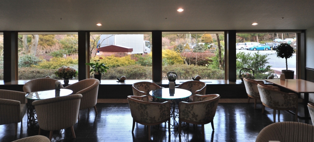 庭も屋内も花で覆われ、建物も富士山と庭を意識した設計となっている。