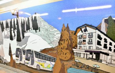 湯田中駅特急発着時間に合わせて、送迎バスが用意されている。