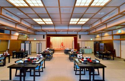 朝食、夕食のブッフェの席では、1/4から1/3程度の席が埋まっているのに過ぎない。空いている。