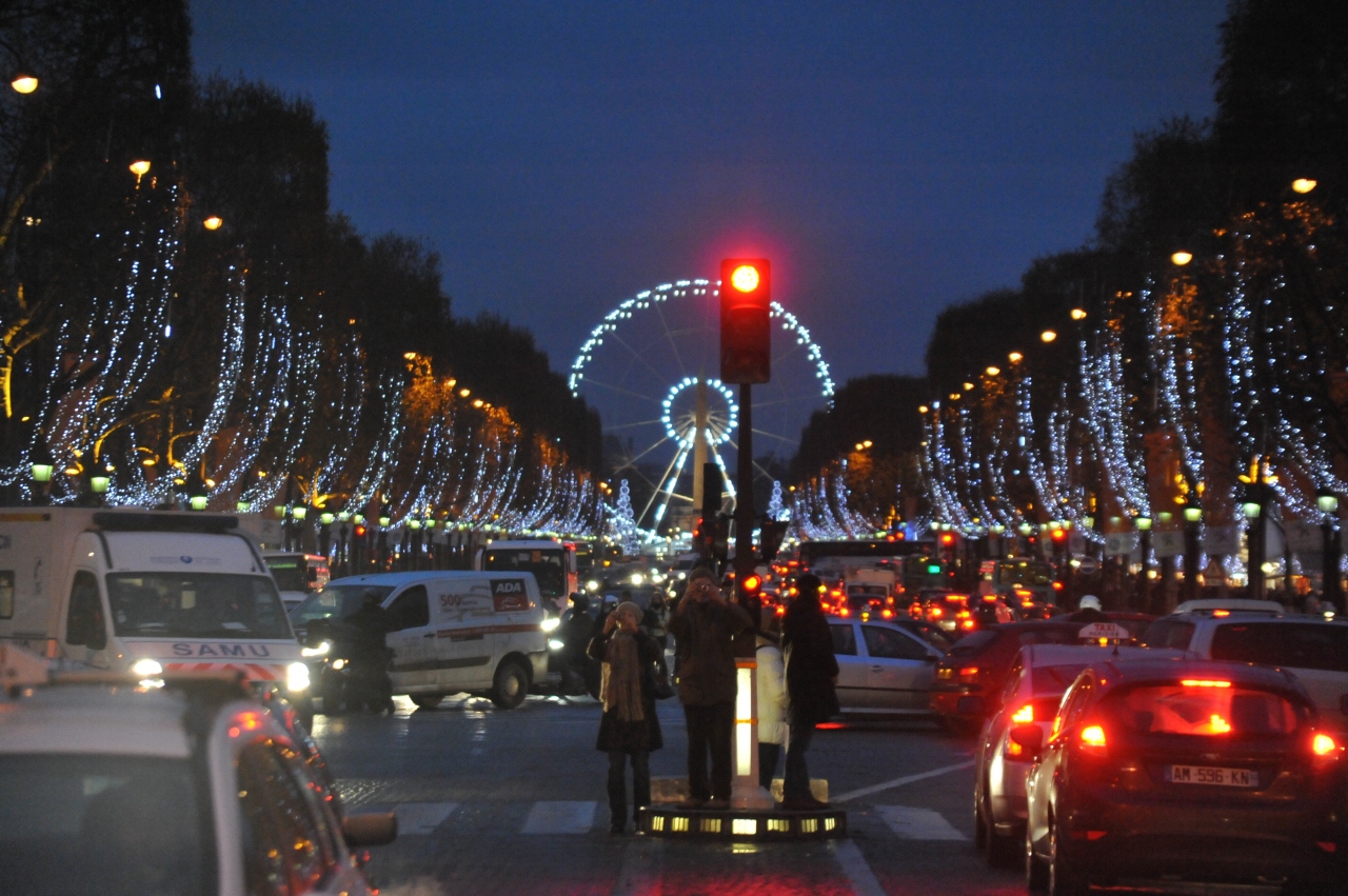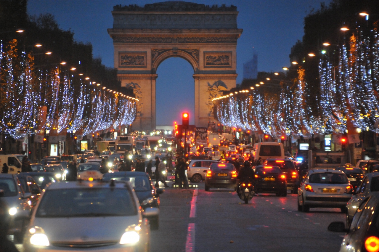 シャンゼリゼ大通りの絶景ポイントは横断歩道の中央 季節はクリスマス市 時間は午後5時以降