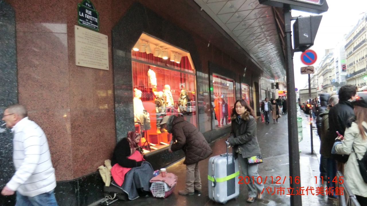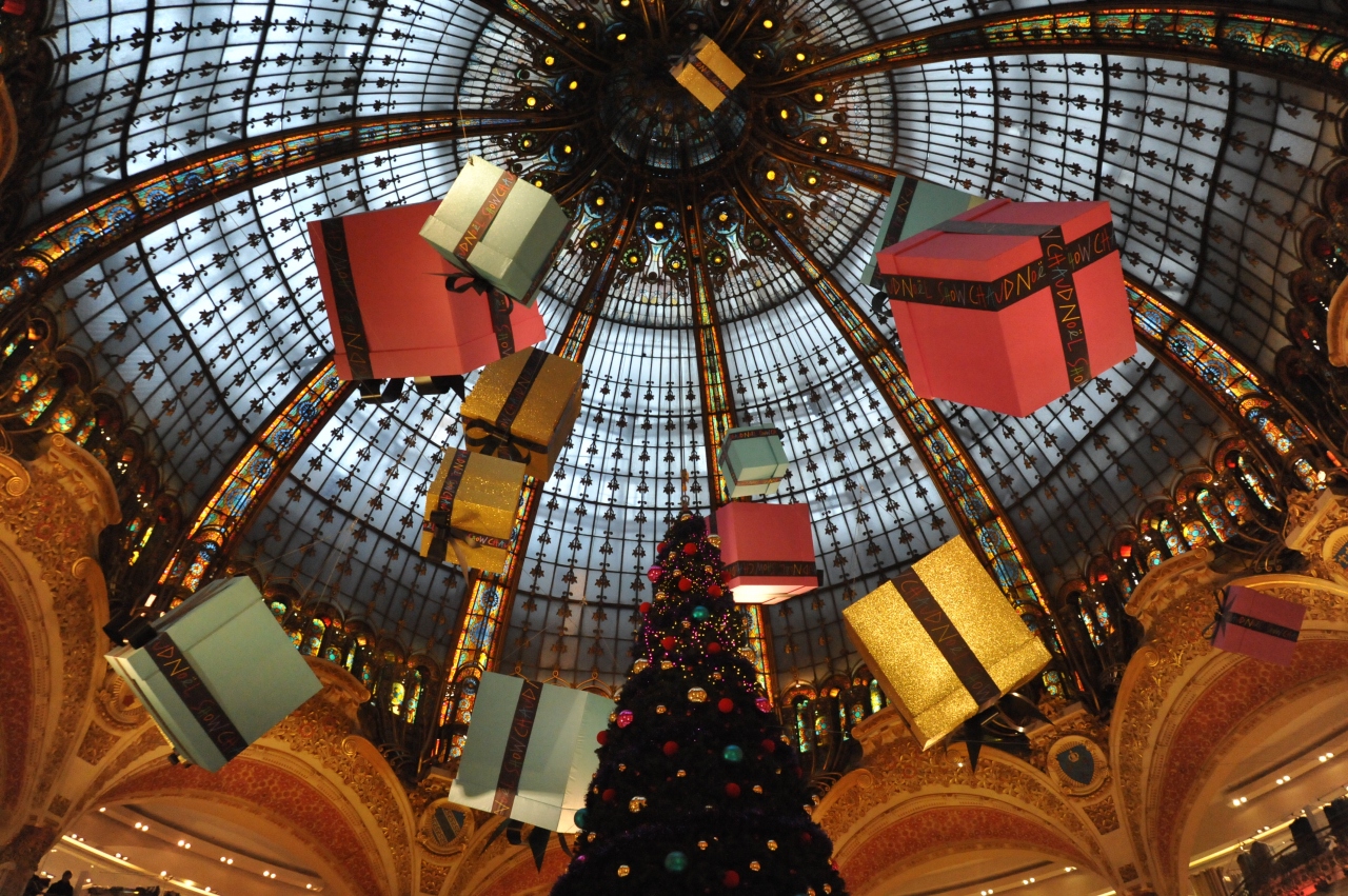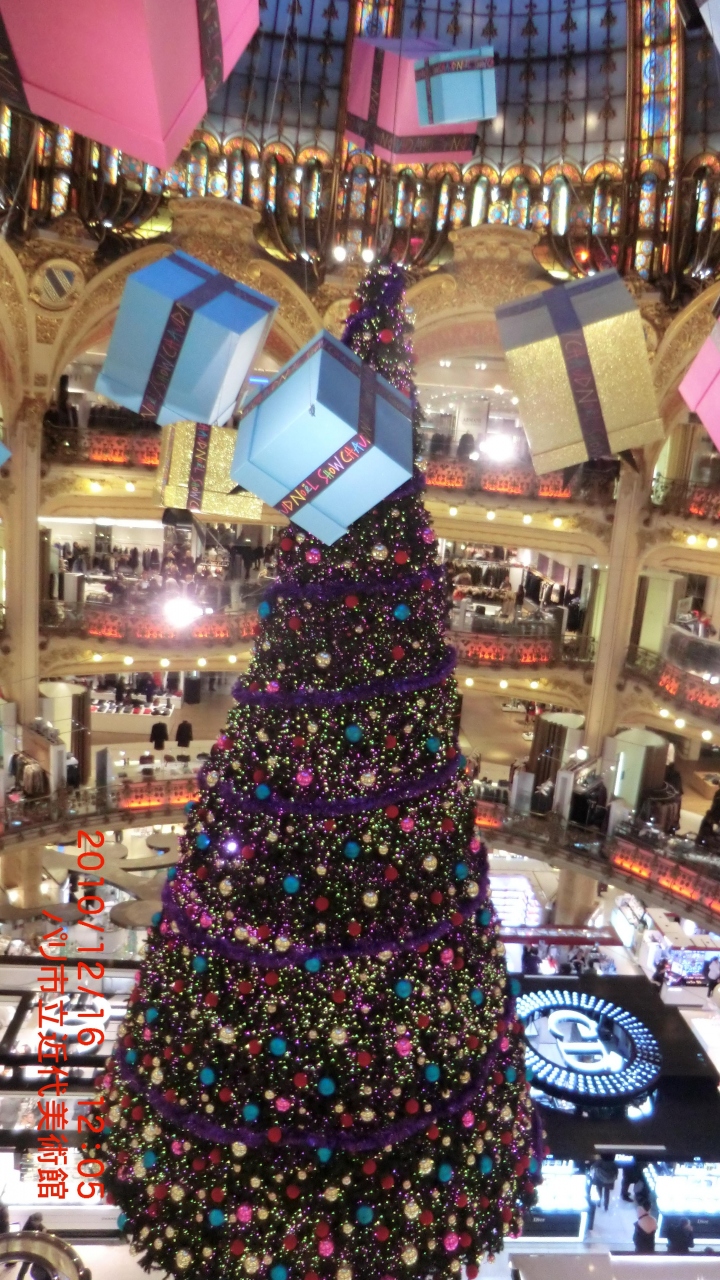 ラファイエットはクリスマスシーズンに行くに限る。中に入れば大きなクリスマスツリーが吹き抜けに飾られている。2階の吹き抜けから下を見下ろせば、化粧品売り場で美しいフランス人店員が見える。外に出れば忙しそうに行き交う人々と面白いウインドウ展示を見ることができる。唯一の難点はトイレが男女兼用であること。