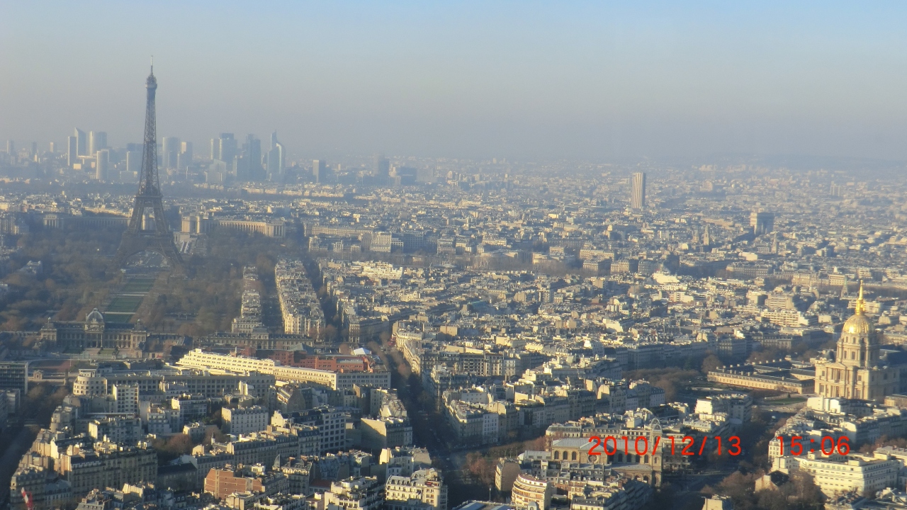 パリ市内を一望できる場所は市内に三箇所ある。一つはモンマルトルの丘、一つはエッフェル塔、一つはここモンパルナス・タワーである。これら三箇所から相互に存在を確認することができる。もっとも高い位置にあるのはこのモンパルナス・タワーの展望台である。但し、見えないものもたくさんある。例えば、セーヌ川。建物の影に隠れて見えない。シャンゼリゼ通り。ここも見えず、凱旋門が見えるだけである。軽食カフェがあり、座って食べながら眺めることも可能である。