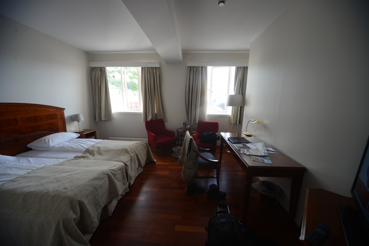 沿岸急行船の着岸場所から徒歩15分 フィヨルドツアーの出発点ベルゲン駅まで徒歩15分、世界遺産倉庫群まで徒歩5分、ホーコン王の館まで徒歩15分、ケーブルカーの入り口まで徒歩3分