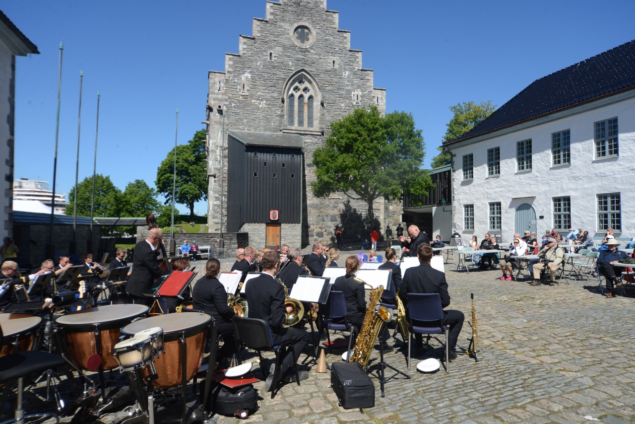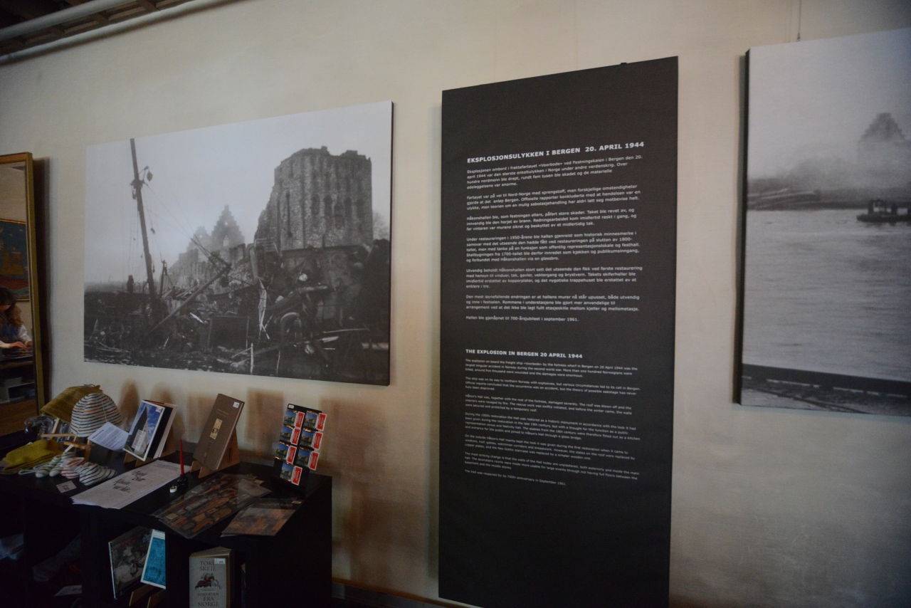 1944年4月20日ベルゲン港停泊中火薬運搬船爆発によりホーコン王の館及び周辺の建物が破壊され、多数のノルウェー市民が死亡した。