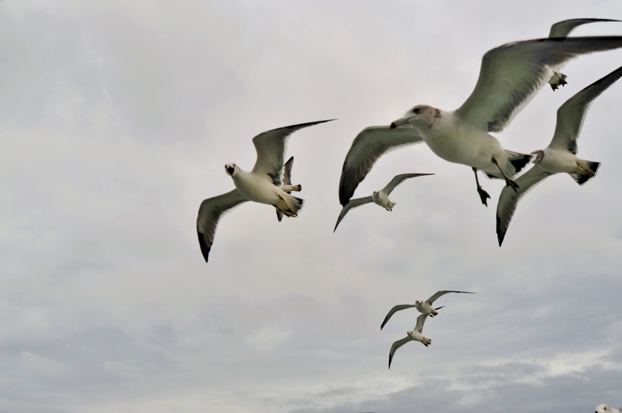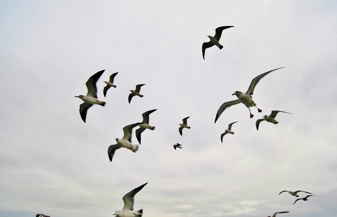 このようなかもめの習性は、内海を横断するフェリーで見たことがある。国内では天橋立観光船から、海外ではノルウェー・グドバンゲンとフラム間のフェリーでかもめに餌やりを行ったことがある。