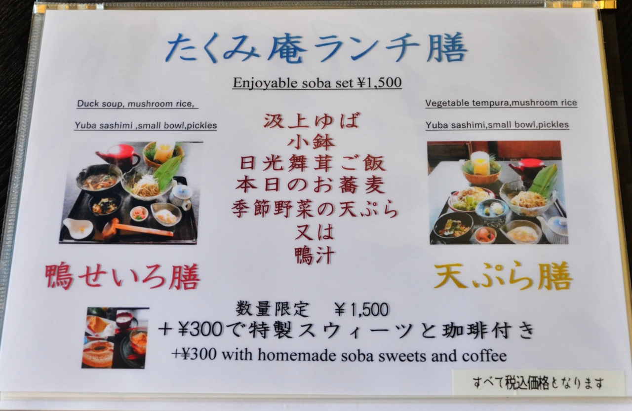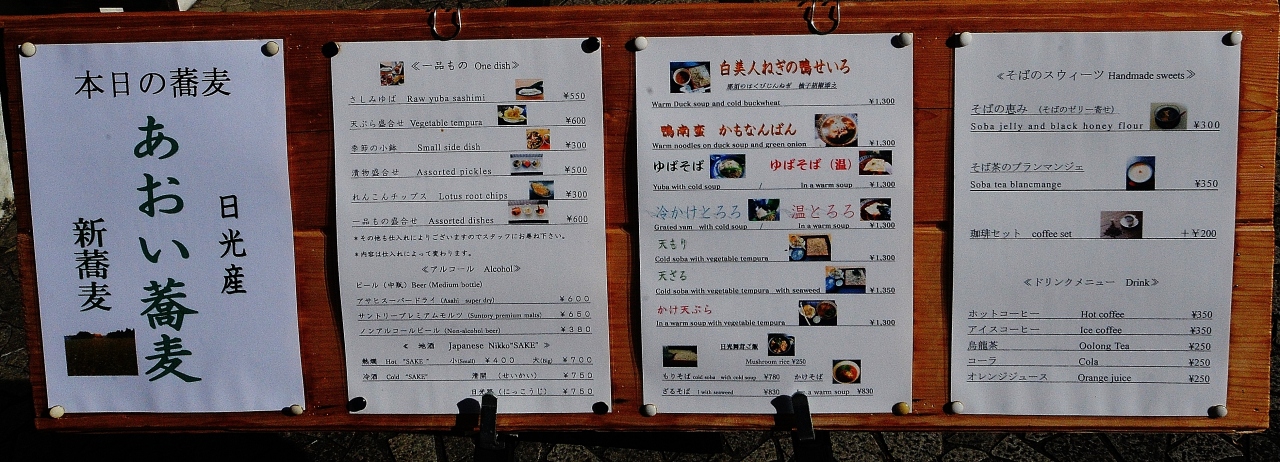日光田母沢御用邸見学後利用するには便利な蕎麦屋である。相客に欧米系の夫婦と日本人中年女性の通訳兼ガイドがいた。近くの金谷ホテルカフェレストランには欧米系の客は一人もいなかった。欧米系の夫婦と日本人中年女性の通訳兼ガイドがこの蕎麦屋を選んだ理由が良くわかる。ひとつは本格的な蕎麦屋であること。もうひとつはベジタリアンにも向いている