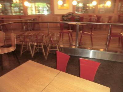 椅子は漆、採光が格子 日本の雰囲気をかもしだす。