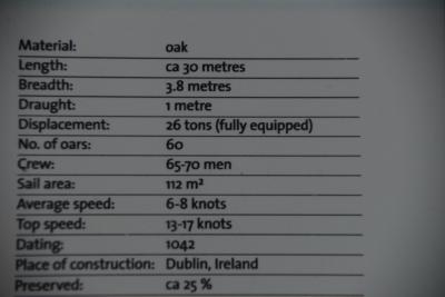 展示されている一艘はアイルランドダブリン近くの森林から伐採された木材が使用されている。残りの船はノルウェー産の木材を使用。このことはデンマークバイキングはスコットランドアイルランドを支配していたと推定される。- 旅行時期