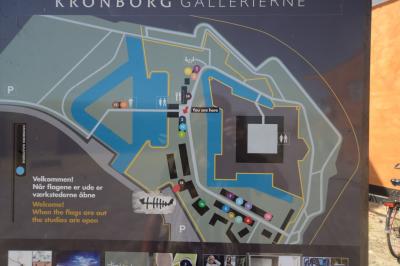 Helsingoer st からクロンボー城までは徒歩15分ぐらいであるが、途中に図書館、カフェ及び商店がある建物があり、ここの図書館で無料トイレ及び休憩ができる。ここは冷房も効いており、クロンボー城と港が良く見える。