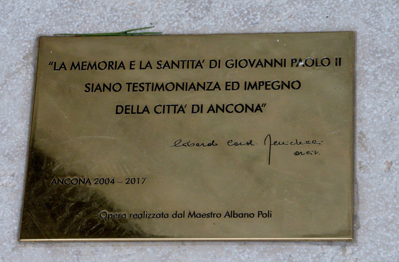 1999年に大聖堂の千年紀が祝われ、教皇ヨハネ・パウロ2世が訪問したことから、その像が敷地内にある。私は、タクシーで訪問したことから、行くのは楽であったが、アンコーナ港を見下ろす高台にある。