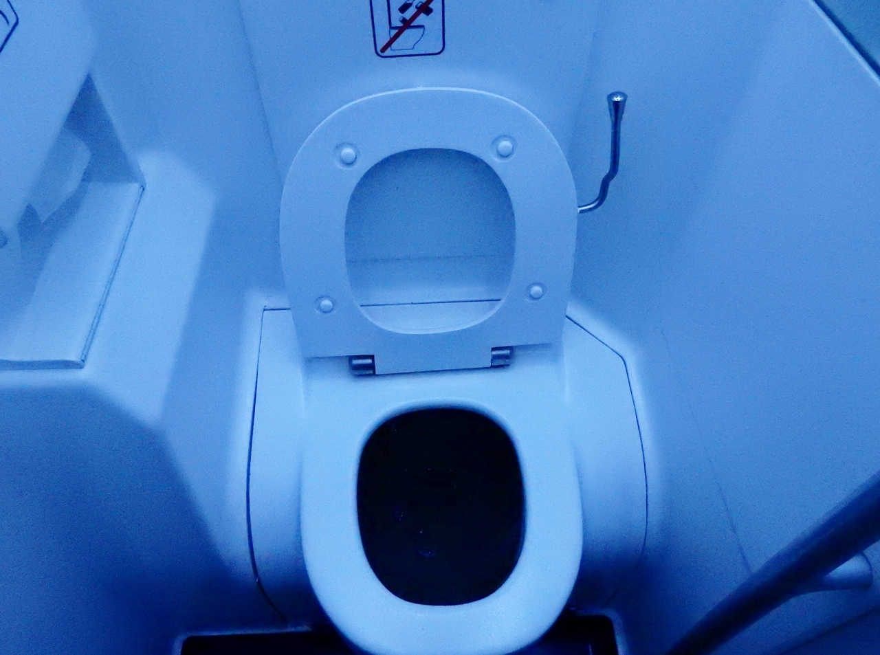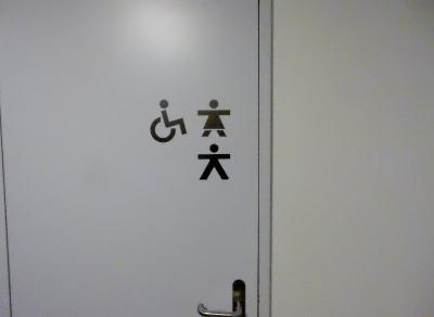 無料トイレは荷物預け所の手前のエスカレータで地下に降り、左へ行き左側にある。
