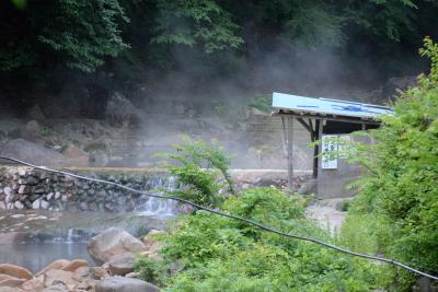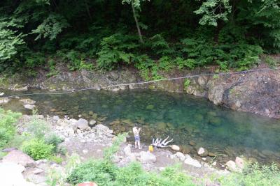 左岸の方へ行くと丁度良い湯加減となる。但し、右岸から左岸に行くことは、藻で滑りやすくなっている岩の上を移動することとなり、老人は右岸で少し熱い温泉につかることを推奨する。