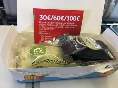 ポルトガル~ローマで利用しましたが、軽食が出ます。美味しいです。
