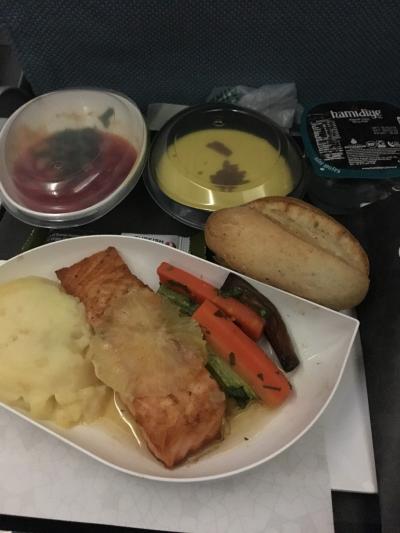 初めて利用しました。機内食は、パスタorチキンと選ぶようになっていましたが、旅先で疲れた胃袋には重そうでしたので、特別食のフィッシュを前もってオーダーしておきました。行きも帰りも乗り継ぎも全てフィッシュにはなりますが、程よい量でした。
