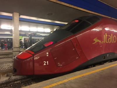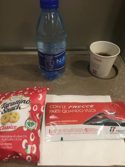 ローマ、フィレンツェ間はイタロ、フィレンツェ、ベネチア間は、フレッチャロッサを利用しました。座席は、日本から29.9ユーロでプレミアムを予約して行きました。水、飲み物、スナック菓子がついて来ます。