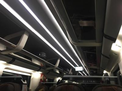 前もって座席を予約していましたが、当日変更、更に乗る時に変更になっていました。結果いい席になりましたが、何故かはわかりません。15分ほどの遅れで出発でしたので、ほぼ定刻です。