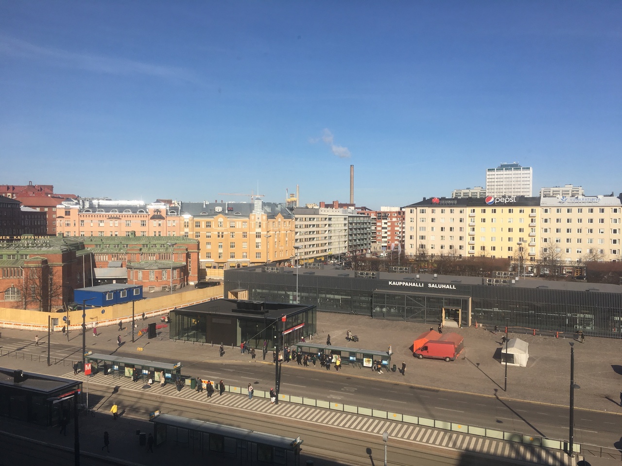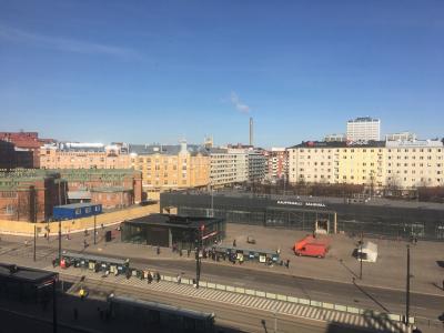 ヘルシンキ中央駅から徒歩10分。マーケットが目の前で、トラムもバス停も目の前です。近くにスーパーマーケットやマクドナルドもあり、非常に便利。部屋も可愛くフロントの方も明るく感じがいいです。朝食もバイキングで、いいです。