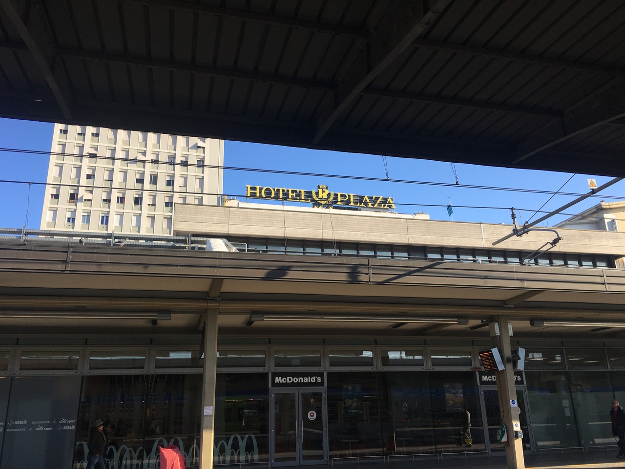 駅構内にアイスのお店、マクドナルド、コンビニ、ピザ店、両替所などあります。日中は、賑わっていますが、朝、7時前、夜21時を過ぎると静かでした。駅目の前からバスも出ていて、ベネチア本島へも行けます。電車の本数も多くわかりやすかったです。チケットの刻印は乗る前に必要です。