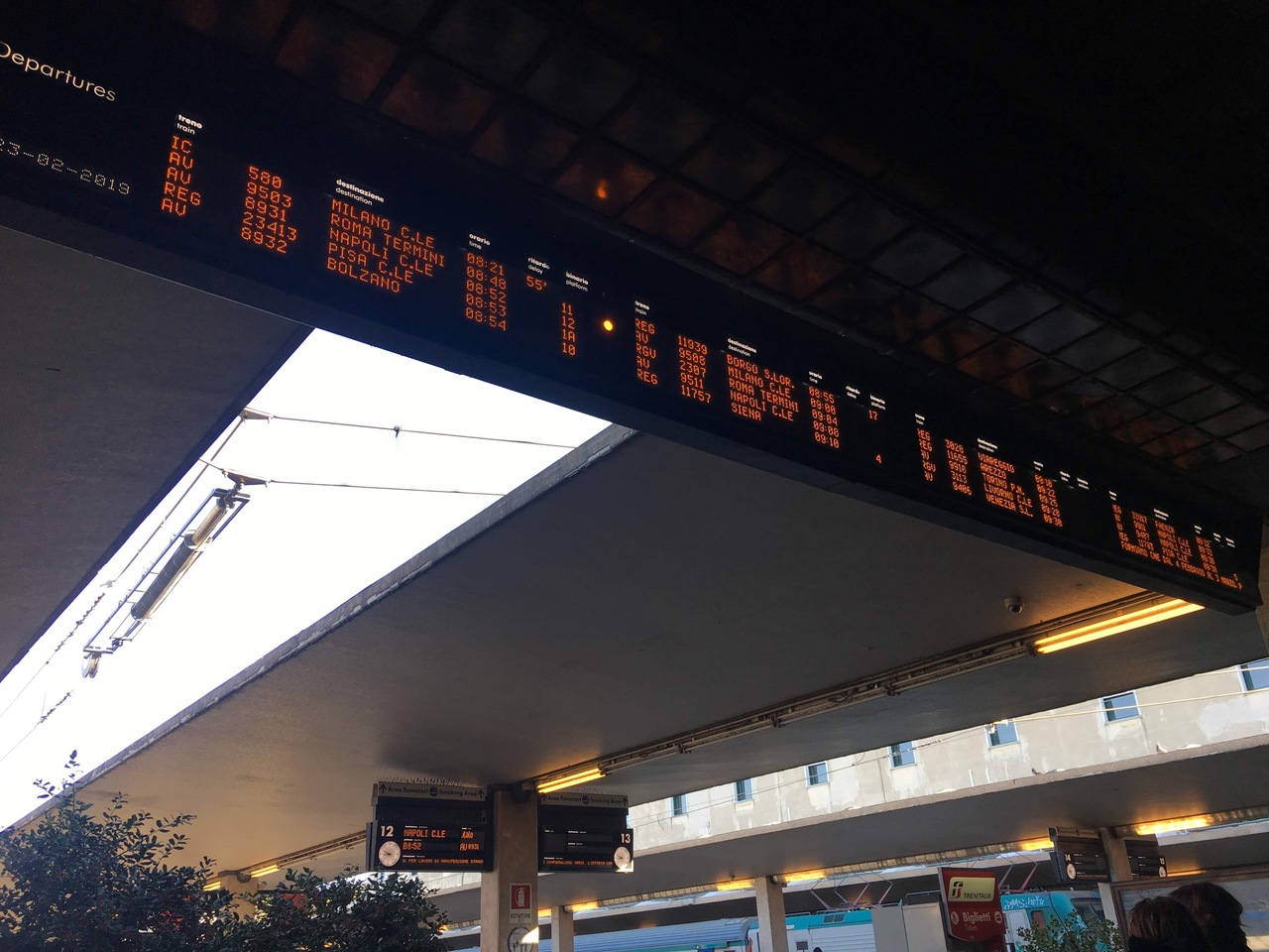 スーツケースの置き場が、車両の間に少ししかなく、大きいものだと3つでいっぱい、テルミニ駅の次から乗って来た方は、置けませんでした。- 旅行時期