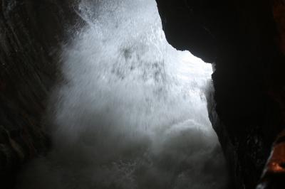 南紀白浜ICから三段壁洞窟へ。低気圧通過後の海は大荒れ。風も強く立って...