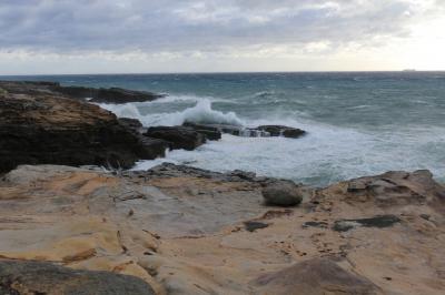 千畳敷は三段壁洞窟からすぐです。当然ですがこちらも高い波、強い風。