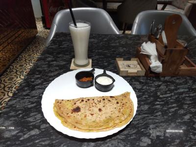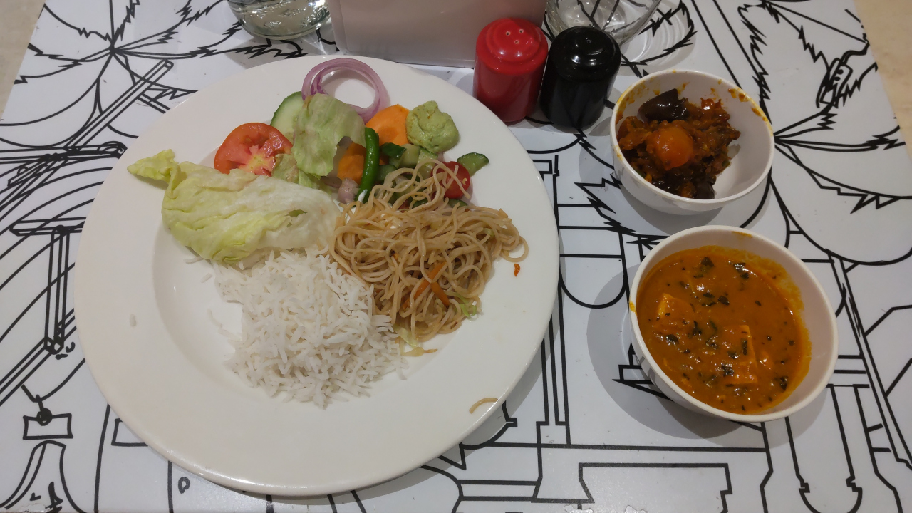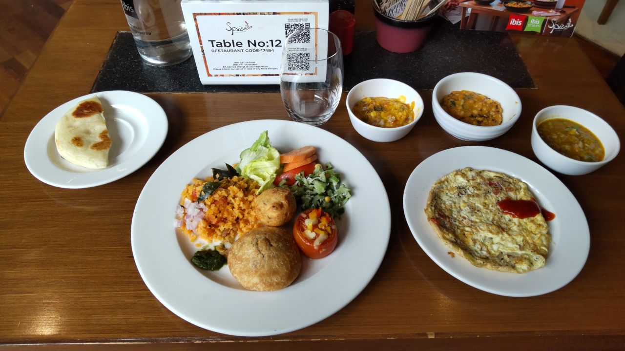 食事・ドリンクともに種類豊富でしたが、お昼にパハールガンジのレストランで食べたベジビリヤニがお腹に溜まっていて、大して食べられなかったのが残念です。