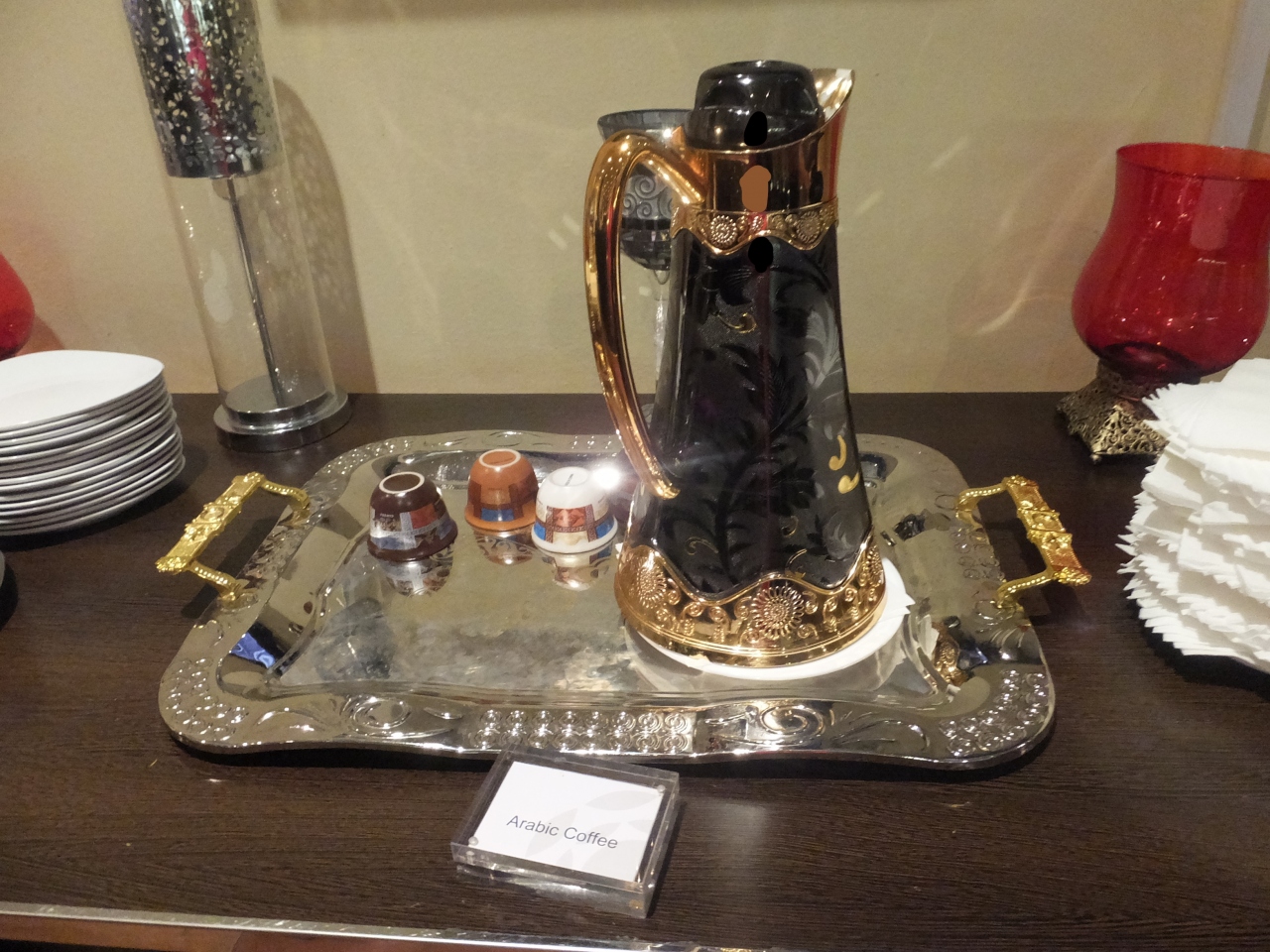 中東ではお約束のアラビックコーヒーとデーツも、もちろんありました♪