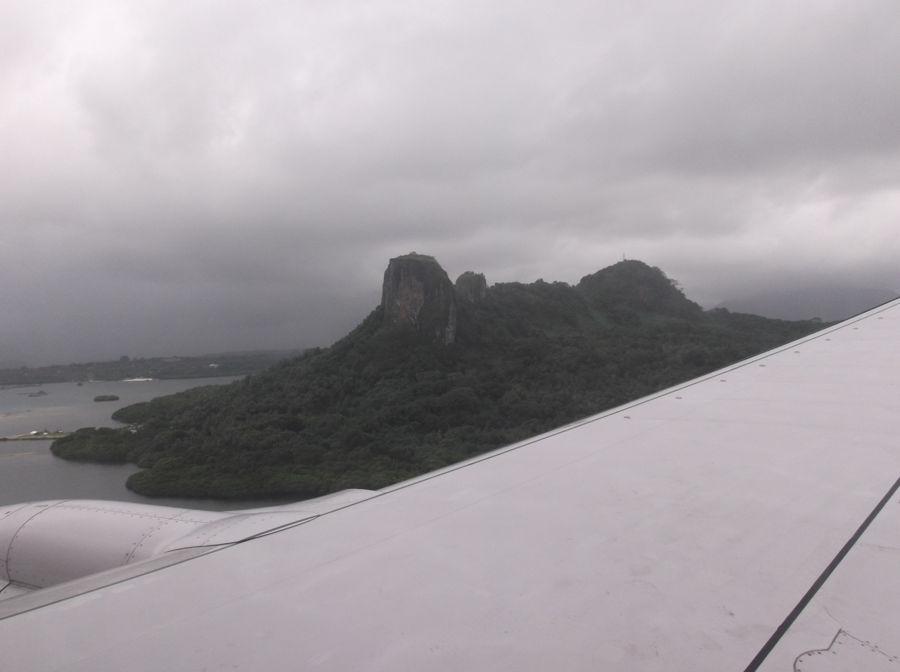 一応ミクロネシア連邦の首都空港なんですが、それが俄かには信じ難いくらいにのどかで何にも無い空港です。ボーディングブリッジなんてものも当然存在しないので、降機したらターミナルまで歩きます。この時は生憎の雨だったので、空港スタッフがタラップの下まで傘を持って来てくれました。空港スタッフに傘を借りたのは後にも先にもここだけでしたね(笑)- 旅行時期