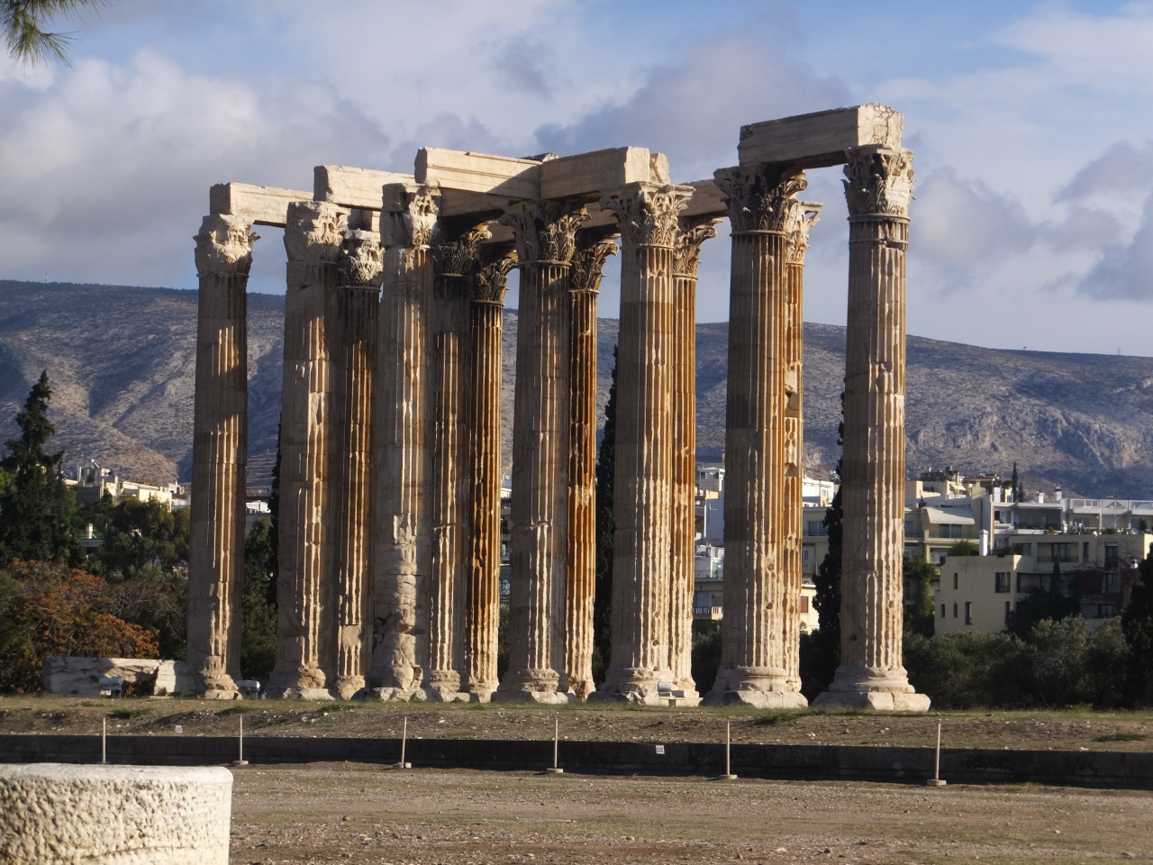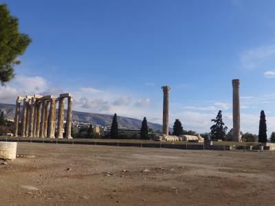 アテネ到着日にアクロポリス遺跡へ向かって歩いていたら、車道の左側に突如現れた遺跡。