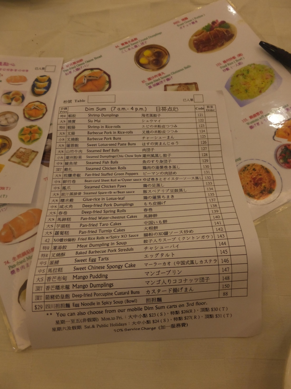 飲茶各種・チキンライス・お粥・焼きビーフン・明治ヨーグルト・ケーキ・スウェンセンズのアイスクリーム各種等々