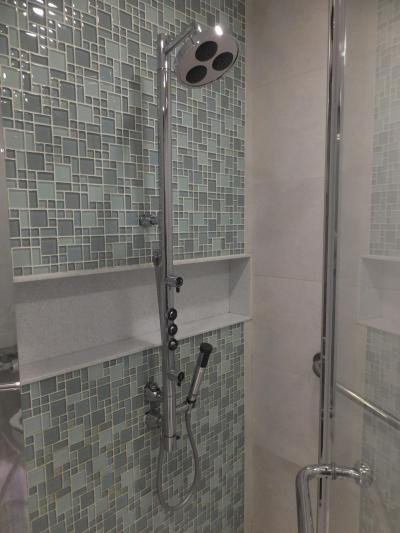 ハンドシャワー・レインシャワー・ウォシュレット付きトイレ・洗面所・石鹸・ボディジェル・リンスインシャンプー・ボディミルク・コットン・綿棒・歯磨きセット・くし・シャワーキャップ・髭剃り・スリッパ・バスタオル・フェイスタオル・足拭きタオル・ドライヤー