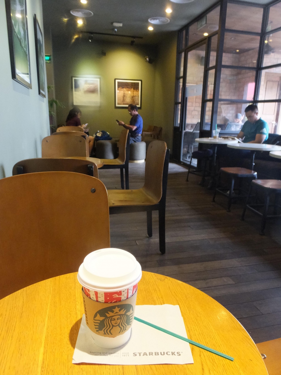 ここではショッピングよりも上階のフードコートやレストラン街でゆったり過ごすことが多いです。今回はスターバックスでアイスコーヒーを飲みながらのんびりしました。