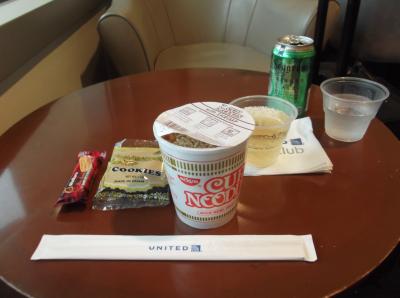 ユナイテッド航空の機内食は正直言ってショボイので、搭乗前にこのラウンジでしっかり食べておくことをお勧めします。まあ、このラウンジのメニューも大したことはないんですが…(^^;