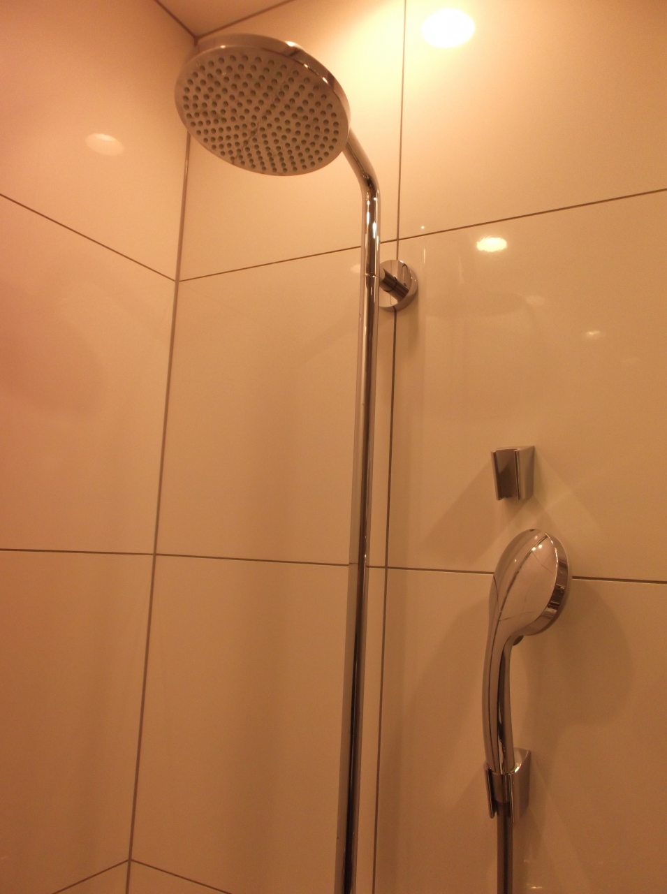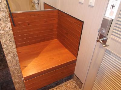 以前のシャワールームには無かったトイレがある!シーティングエリアまで!