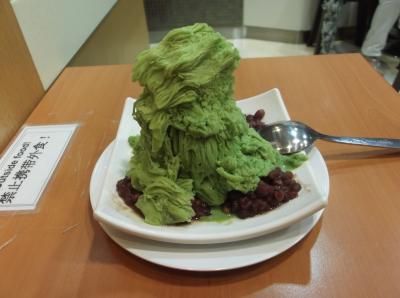迷った挙句、今回は抹茶と小豆のかき氷を注文。見た目も味も◎で満足。