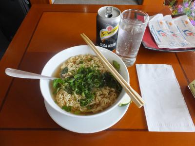 到着の1時間半前に再度、機内食・スナック・ドリンクの販売がありました。お腹がすいていたのでカップラーメンをいただきました。こちらも味はまあまあ。