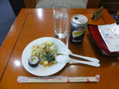 巻き寿司(2種類)・稲荷寿司・フィンガーサンドイッチ・デニッシュ・バナナ・チョコレート・香港のトマトヌードル(味はまあまあ)・馬車道のアイスクリーム…等々 ★ホットミールは無し