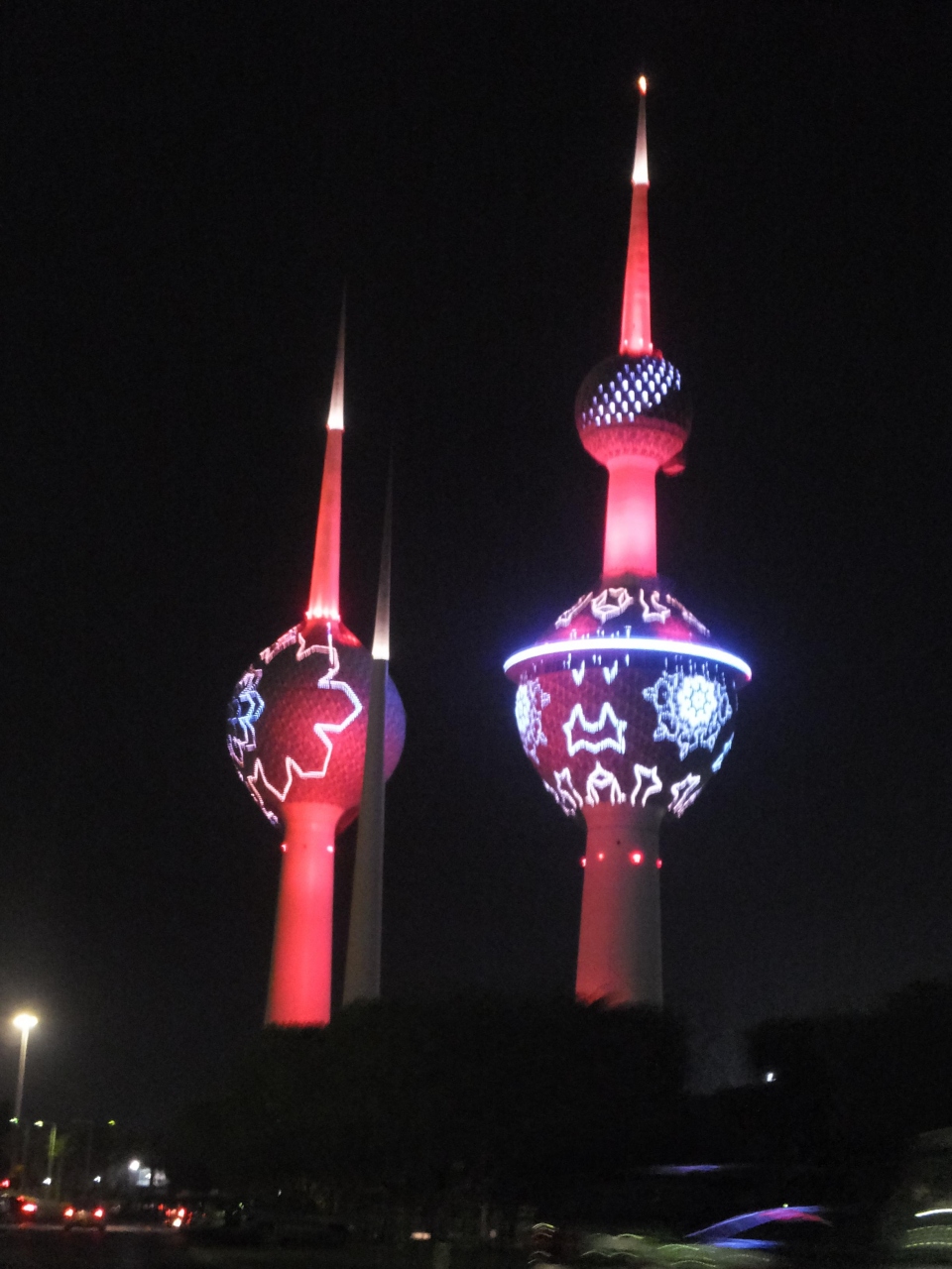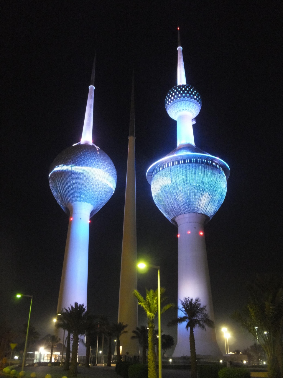 ホテルからタクシーを走らせること10数分。私を待ち受けていたのはライトアップされたクウェートタワーの美しい姿。