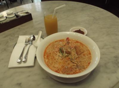私が食べたのはラクサ。ラッフルズホテルにあるエンパイアカフェのラクサに比べれば大味ですが、なかなか美味しかったです。