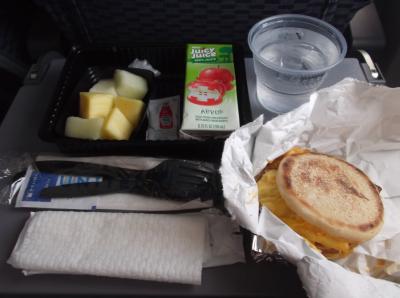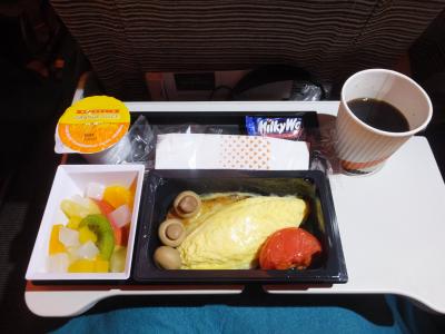 到着前に出された2度目の機内食は、洋風とベジタリアン。またしてもベジタリアンをチョイス。これも普通に美味しかった。