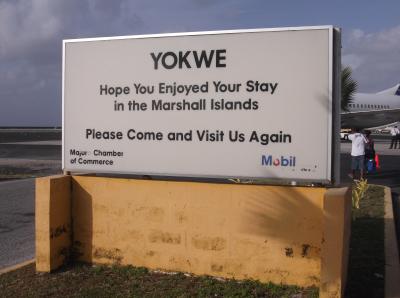8:00過ぎにグアムを出発した旧式の小型機は、2時間弱のフライトと中継地の空港で約45分の待機を繰り返し、マジュロに到着したのは約9時間後の19:15頃でした。は~長かったあ~